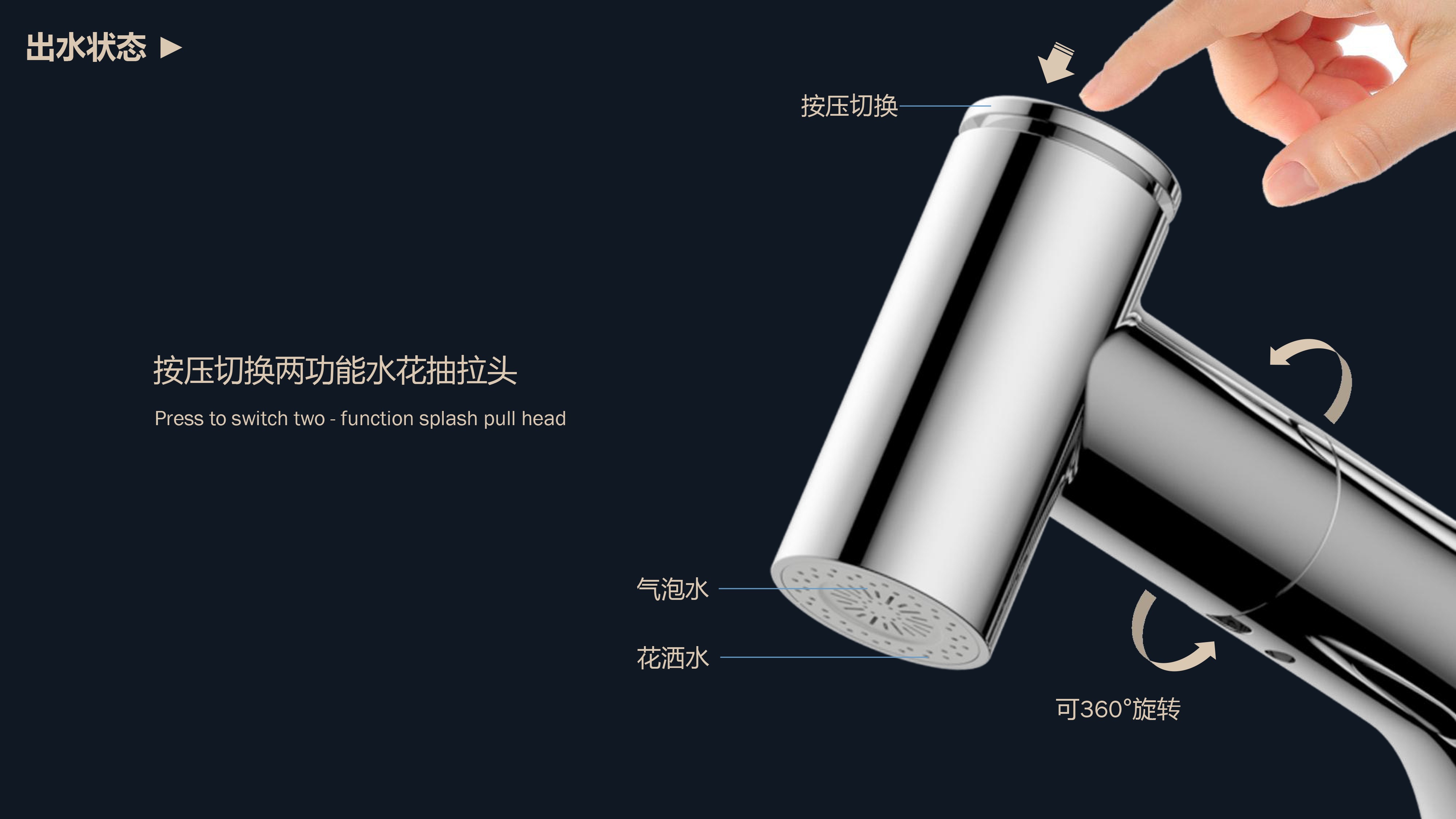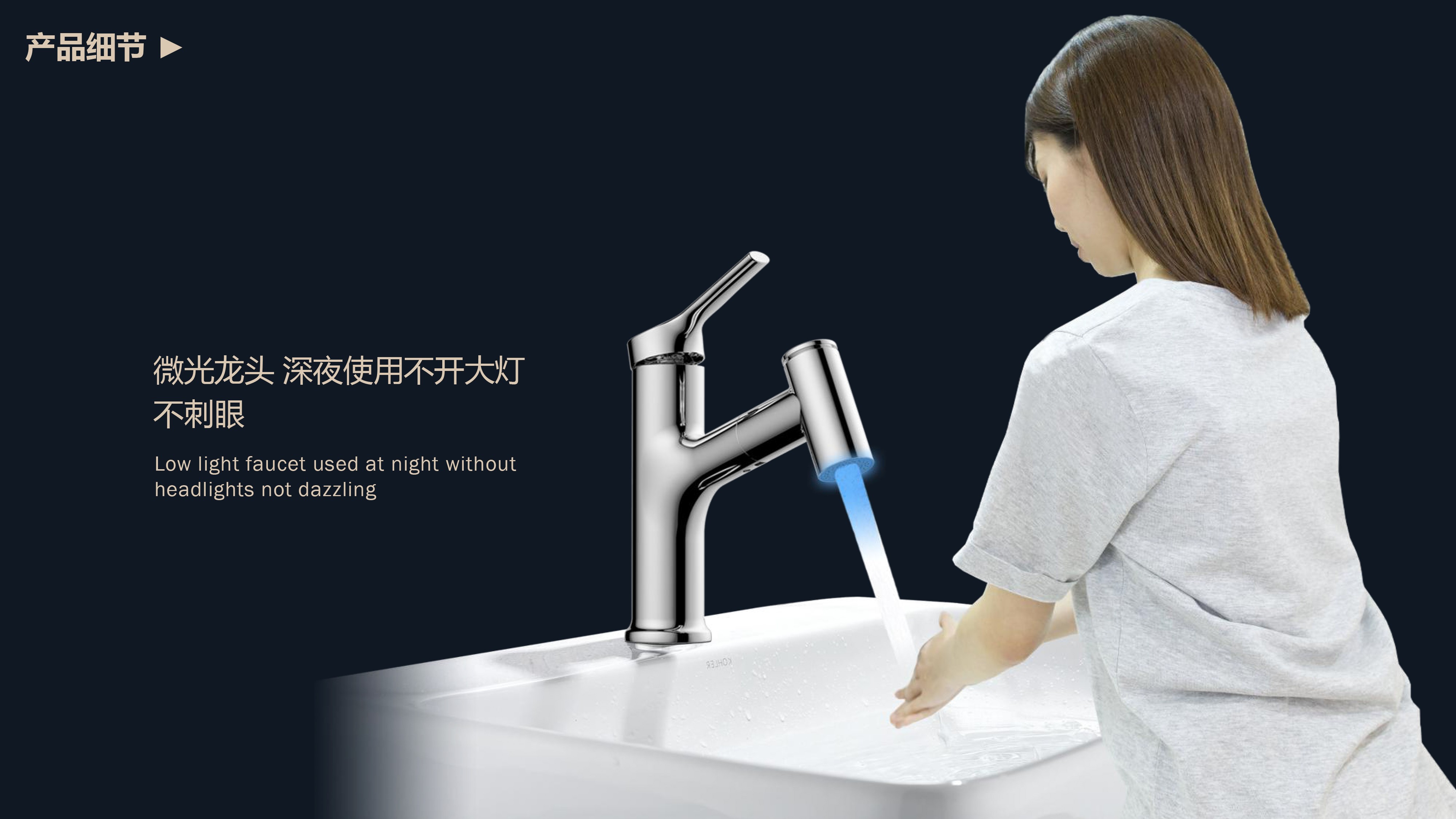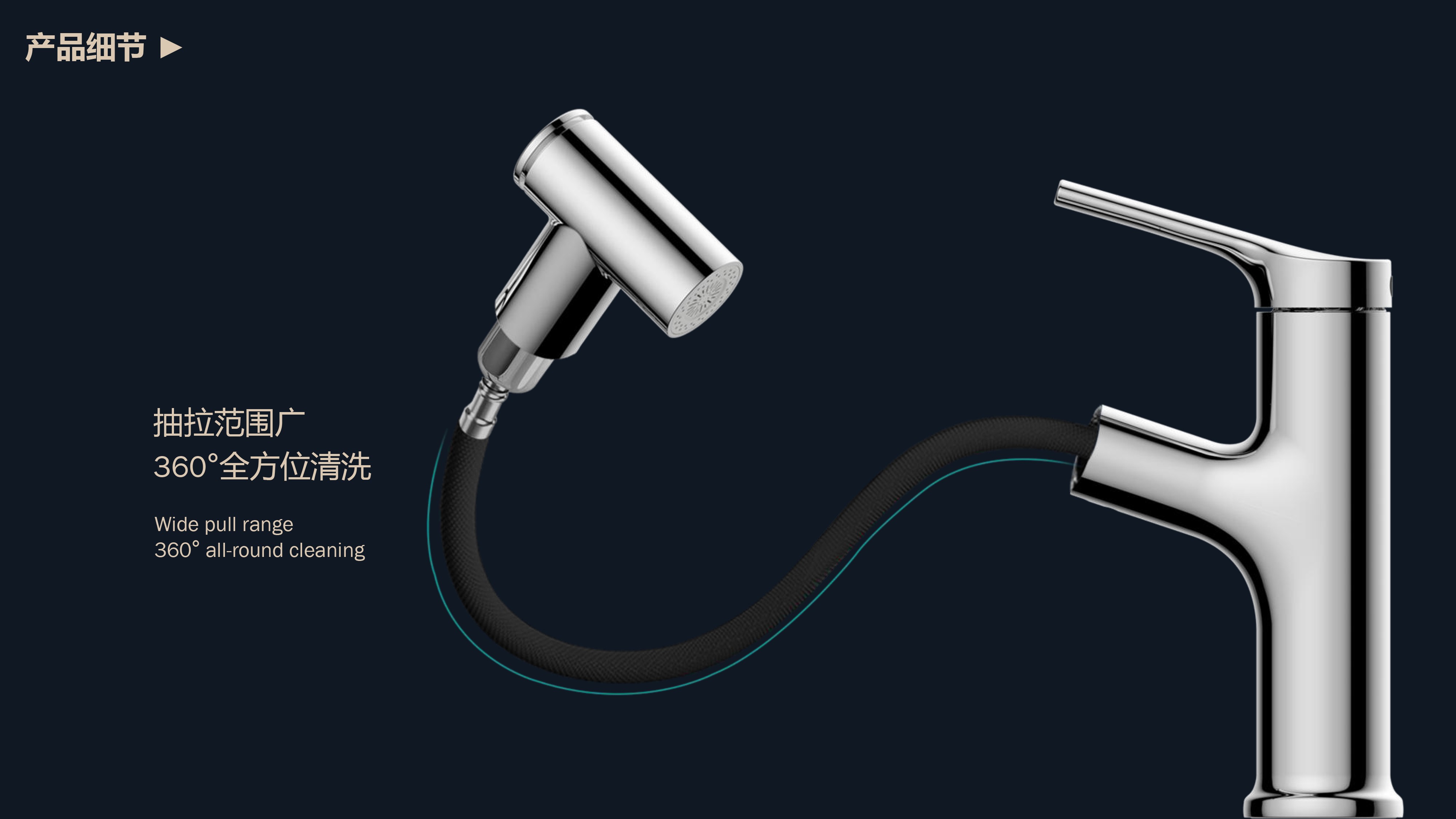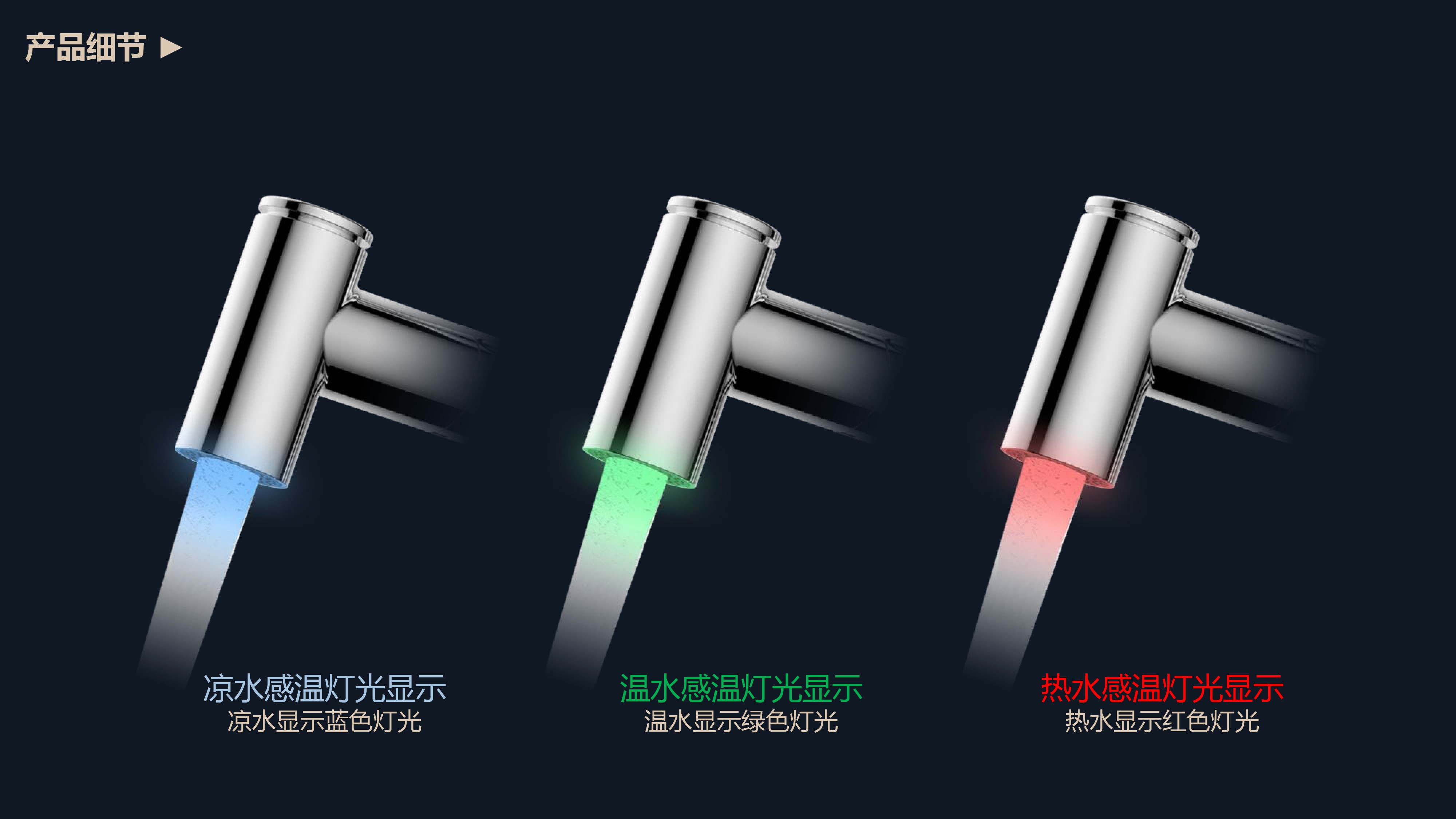 360°全方位抽拉清洗;微光龍頭,深夜使用不開大燈,不刺眼;日常洗頭利器,抽拉出水輕松洗;按壓切換兩功能水花;三種顏色LED燈光顯示水溫;重力錘復(fù)位設(shè)計,順暢伸縮,精準回位;無需工具,一推一擰10秒快裝